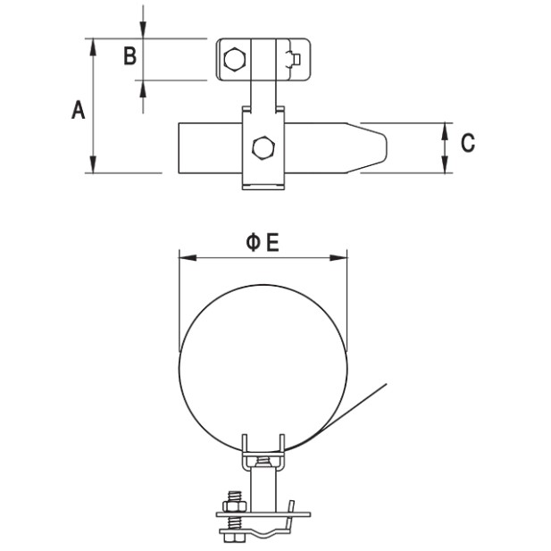 Służy do mocowania drutu odgromowego do rury spustowej lub innego profilu zamkniętego, możliwe prowadzenie drutu O 8 i O 10, stal nierdzewna