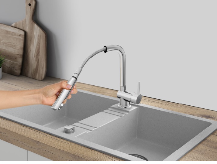 FERRO TOLEDO Jednouchwytowa bateria zlewozmywakowa z wyciąganą wylewką stojąca chrom
