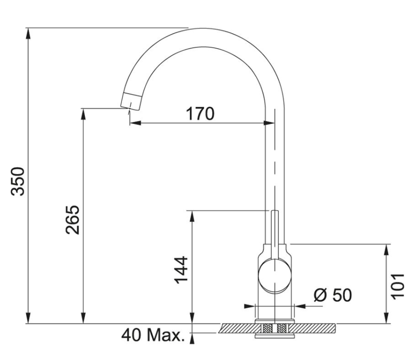 Pola Bateria kuchenna stojąca, jednootworowa ze stałą wylewką, wysokociśnieniowa, wykończenie Onyx, dźwignia mieszacza z boku, głowica ceramiczna Ø 35