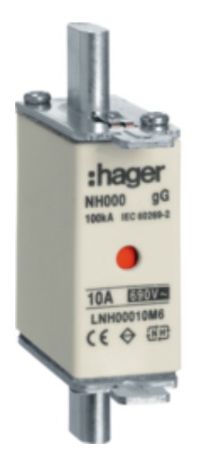 Hager Wkładka bezpiecznikowa nożowa NH00 10A 690VAC Kod LNH00010M6