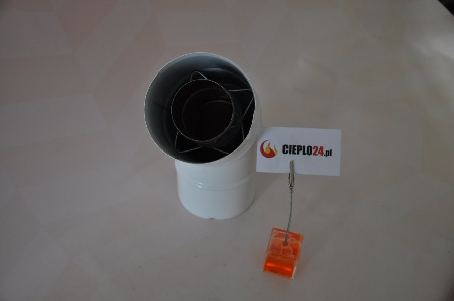Kolano spalinowe 45° stopni fi 60/100 dwuścienne białe JEREMIAS