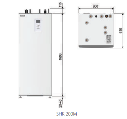 Nibe Centrala wewnętrzna SHK 200M ze zintegrowanym zbiornikiem emaliowanym cwu 180L i sterownikiem (do F2040-6, F2040-8, F2040-12 oraz F2120-8, F2120-12 i F2120-16), dedykowana do systemów grzewczych z pompami ciepła NIBE MONOBLOK. Pobór mocy: 9kW.