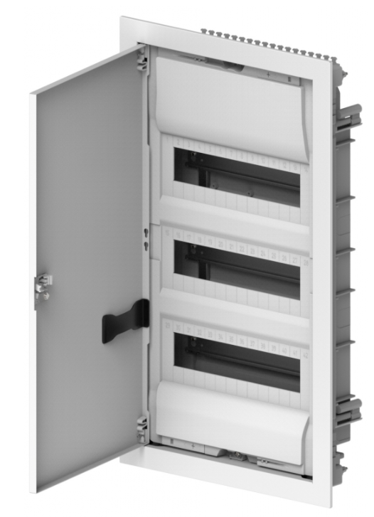 Rozdzielnica podtynkowa metalowa, z listwami, 358x603x94 mm, stopień ochrony IP30, napięcie znamionowe 400V, odpornosc na uderzenie IK05, rzędów 3, 12 modułów, kolor biały, drzwi w kolorze obudowy