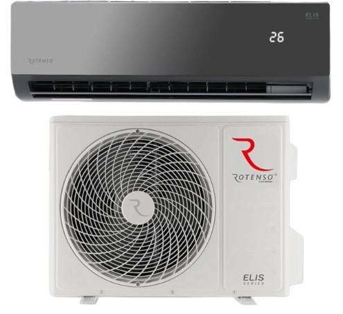 Rotenso Elis Zestaw klimatyzator jednostka wewnętrzna o mocy 5,1 kW + jednostka zewnętrzna o mocy 5,1 kW. Stanowią komplet. Obudowa jednostki wewnętrznej jest z szklanego panelu w kolorze grafitowym. Smart WIFI. Filtr elektrostatyczny HD iAIR. System automatycznego nawiewu 4D. Filtr 3w1.
