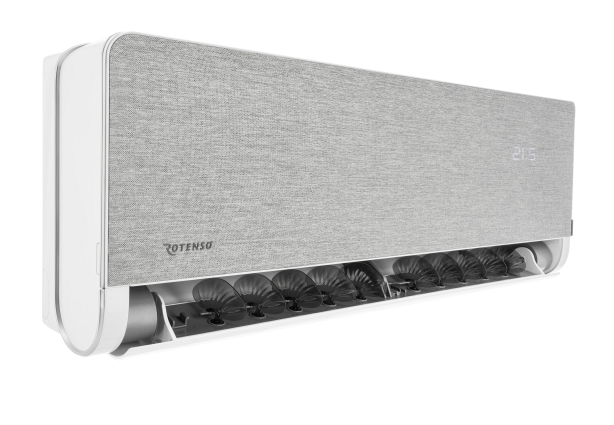 Rotenso Versu Cloth Stone Zestaw klimatyzator jednostka wewnętrzna o mocy 2,6 kW + jednostka zewnętrzna o mocy 2,6 kW. Stanowią komplet. Obudowa jednostki wewnętrznej jest w kolorze białym z srebrnymi zdobieniami i wymiennymi panelami materiałowymi. Smart WIFI. Sprężarka rotacyjna DC. System automatycznego nawiewu 4D. Posiada pakiet dla pracy całorocznej: grzałka tacy ociekowej + grzałka karteru sprężarki.