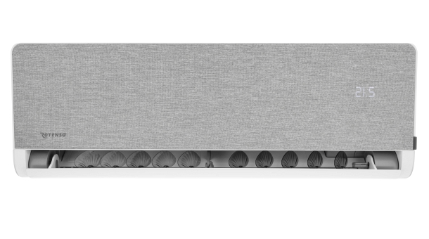Rotenso Versu Cloth Stone Zestaw klimatyzator jednostka wewnętrzna o mocy 3,5 kW + jednostka zewnętrzna o mocy 3,5 kW. Stanowią komplet. Obudowa jednostki wewnętrznej jest w kolorze białym z srebrnymi zdobieniami i wymiennymi panelami materiałowymi. Smart WIFI. Sprężarka rotacyjna DC. System automatycznego nawiewu 4D. Posiada pakiet dla pracy całorocznej: grzałka tacy ociekowej + grzałka karteru sprężarki.