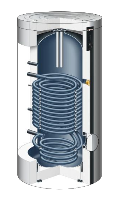 Vitocell 100-V typ CVWA w kolorze srebrnym. Do podgrzewu wody użytkowej przy wykorzystaniu pompy ciepła. Możliwość podłączenia kolektorów słonecznych poprzez zestaw solarnych wymienników ciepła. Pojemność 500 litrów. Wykonany ze stali, z emaliowaną powłoką Ceraprotect. Kolor srebrny.
